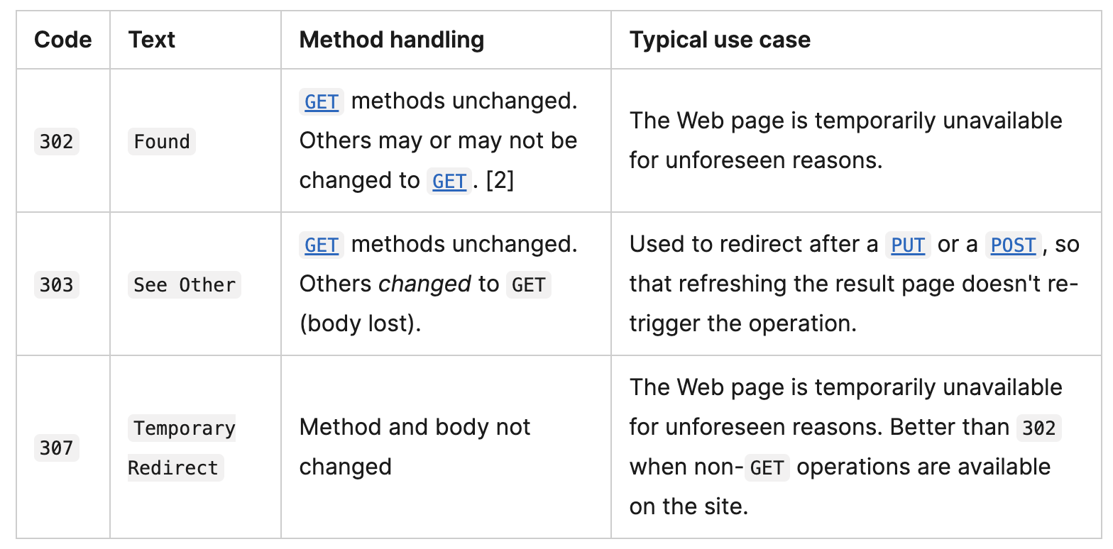 하지만 많은 블로그에서 보통 302를 사용하라고 소개하고 있습니다.