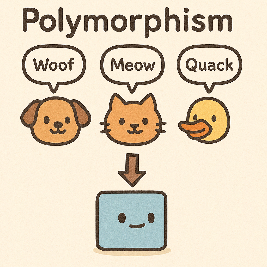 다형성은 같은 인터페이스나 메서드 이름을 가지고 있어도 맥락에 따라 다른 동작을 수행하도록 하는 것을 의미합니다.