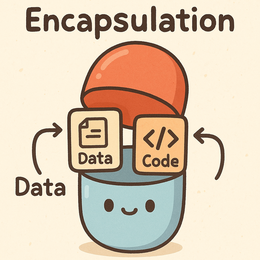 변수나 메소드에 대한 구현은 캡슐처럼 내부에 두고 외부는 인터페이스만 공개하여 객체의 무결성을 유지하고 코드의 유지 및 보수를 쉽게 만들어 줍니다.