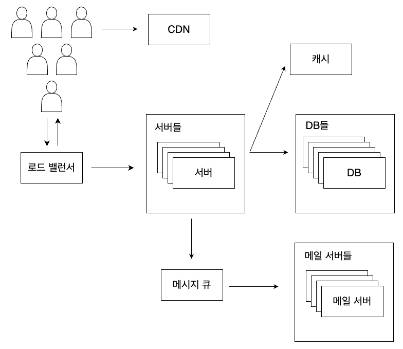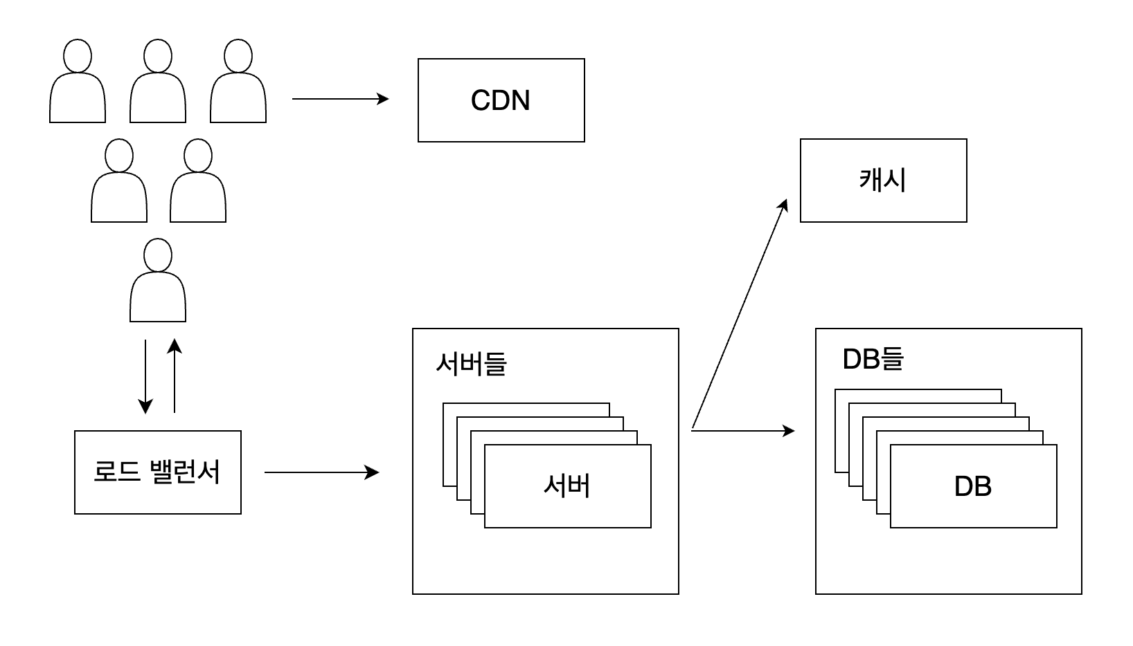 서비스가 점점 잘 되서 이제 해외에서도 서비스를 하게 되었습니다. 만약 서버가 국내에만 있게 되면 해외 유저의 요청은 지리적 거리로 인해 응답 시간이 매우 길어질 겁니다. 그래서 해외에도 서비스를 하게되면 보통 CDN을 사용하게 됩니다. CDN은 정적 콘텐츠를 캐싱하는 지리적으로 분산된 서버의 네트워크입니다. 동적 콘텐츠도 캐싱이 가능하다고 하는데 이 글에선 정적 콘텐츠의 캐싱만 다루겠습니다. CDN을 사용하게 되면 특정 사용자의 요청은 그 사용자에게 가장 가까운 CDN이 처리하게 됩니다. 이때 CDN에 해당 파일이 존재하면 바로 해당 파일을 반환하고 CDN에 없으면 원본 서버에서 해당 파일을 가져와 CDN에 저장한 뒤 이후의 요청에선 CDN에서 해당 파일을 반환하게 됩니다.