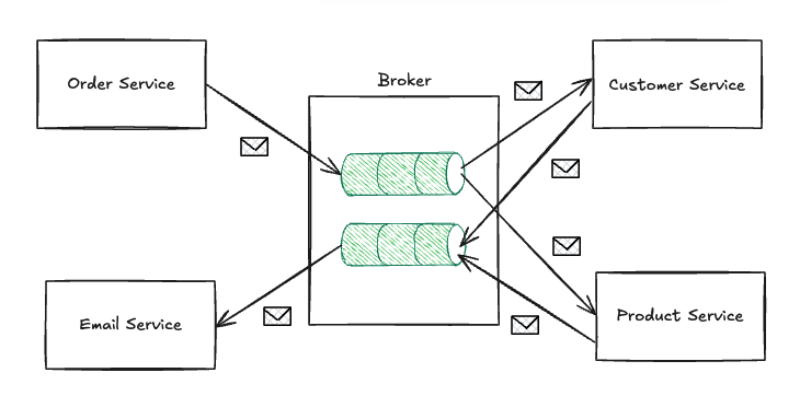 기존의 시스템에서는 사용자가 주문을 하거나 사진을 업로드 하는 등 변화가 발생할 때마다 필요한 기록을 즉시 업데이트합니다. 하지만 EDA에서는 이러한 변화를 하나의 이벤트로 생각합니다. 서비스들을 이러한 이벤트를 발행하고 비동기적으로 이에 반응합니다. 이벤트는 하나의 기록입니다. "사용자 A가 주문 1을 생성했다."와 같이 무슨 일이 발생했는지를 기록합니다. 이런 이벤트에 기반한 통신은 디커플링을 제공합니다. 디커플링은 프로듀서와 컨슈머가 독립적으로 확장할 수 있게 해줍니다. 또한 실패가 격리되어 컨슈머가 일시적으로 중단되도 이후에 다시 따라잡을 수 있는 복원력을 제공합니다. 하지만 디커플링은 네트워크 지연이나 재시도 과정에서 이벤트 순서가 뒤바껴 도착하거나 중복된 이벤트 처리가 발생할 수 있는 단점도 있습니다.