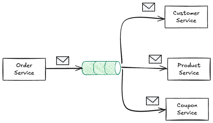 Pub/Sub 패턴은 같은 메시지를 여러 구독자들에게 전달하는 패턴을 의미합니다. 메시지 큐가 단일 Consumer에게 push하는 것과 다르게 말이죠. 생산자가 토픽에 메시지를 발행(Publish)하게 되면 해당 토픽을 구독(Subscribe)한 구독자들은 모두 동일한 메시지의 복사본을 받게됩니다. 각 구독자는 메시지의 복사본을 각자의 방식으로 처리합니다. 이러한 방식은 분리와 확장성의 측면에서 이점을 가집니다. 발행자는 누가 메시지를 처리하는지 알 필요가 없고 발행자나 브로커의 변경 없이 구독자를 추가할 수 있기 때문입니다.