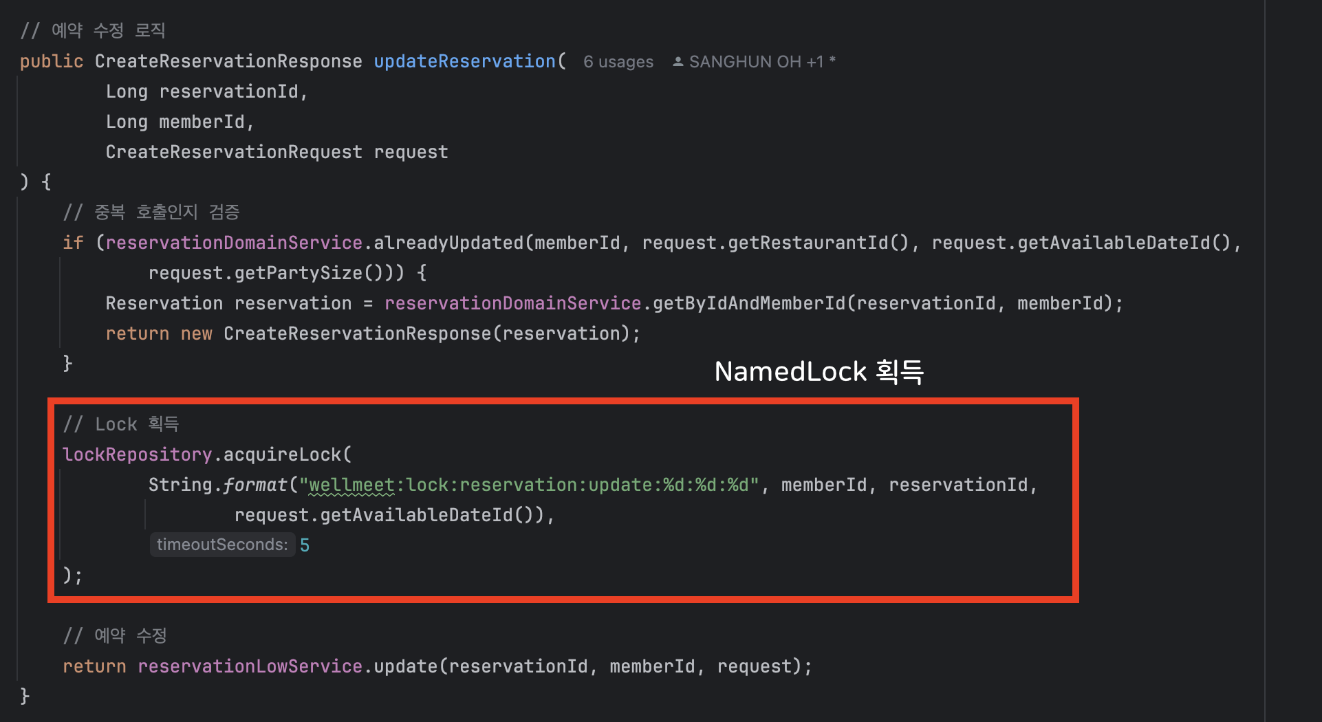 추가로 Lock을 획득한 뒤 로직이 끝난 뒤 해제하지 않은 이유는 Lock을 활용한 이유가 한명의 유저가 중복 호출하는 경우를 막기 위한 용도이고 Lock을 획득할 때 Lock의 Name에 memberId를 포함하기 때문에 다른 유저의 로직에는 영향이 없기 때문에 별도로 해제하는 로직을 넣진 않았습니다.