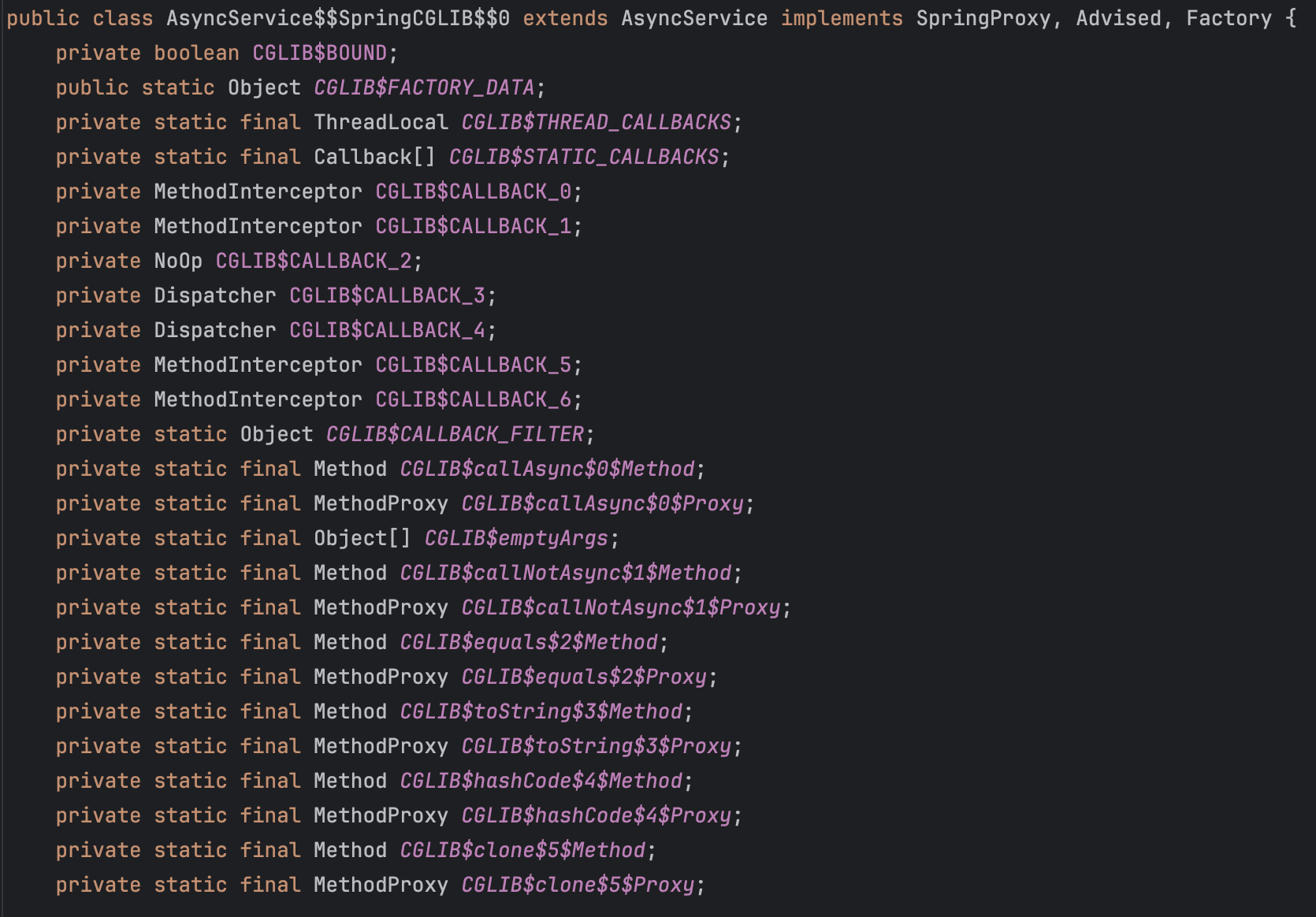 AsyncService$$SpringCGLIB$$0 proxy = new AsyncService$$SpringCGLIB$$0();